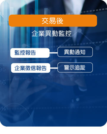 合規報告:透過正負面新聞、制裁、關鍵人物、IPO與否等不同面向的負面紀錄資料庫,針對各紀錄項目及綜合整體產出評分,快速驗證企業是否符合特定的法規或法律標準。