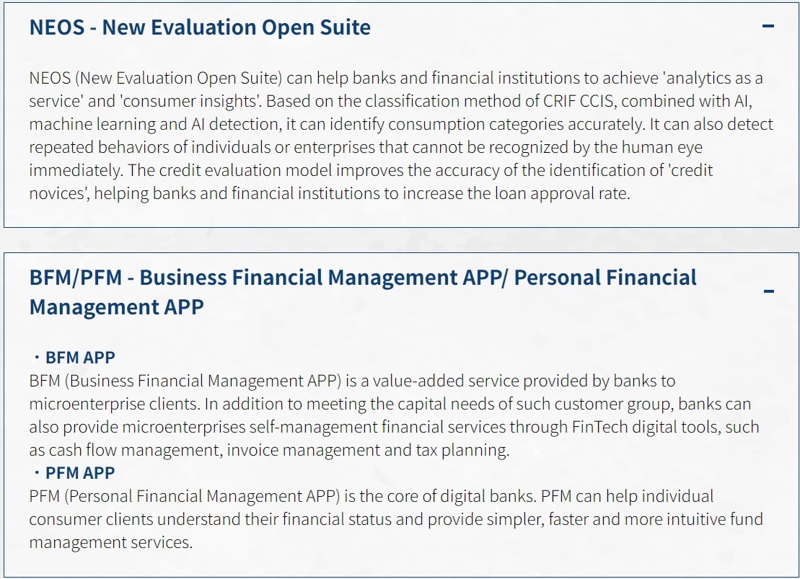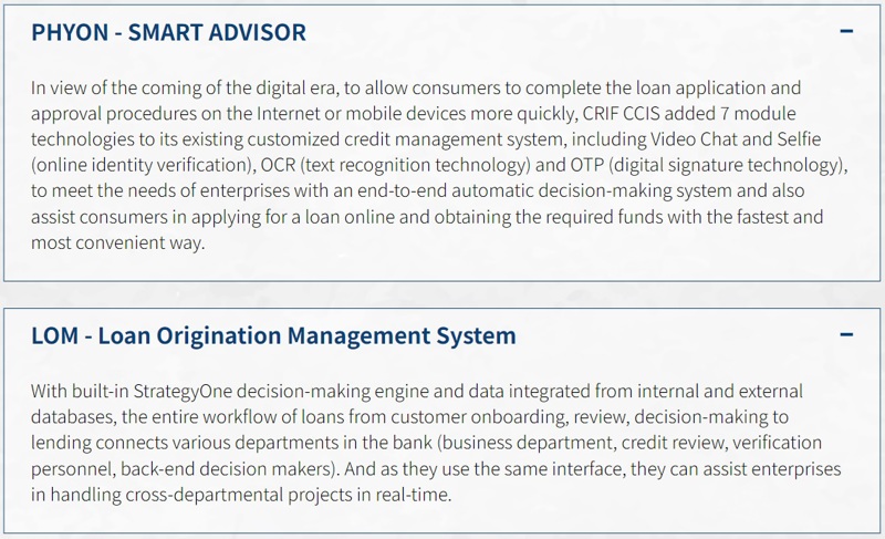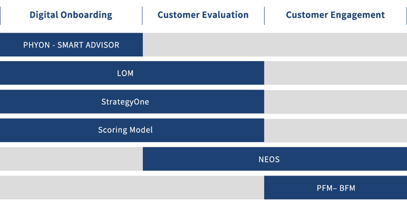 In view of the arrival of the digital era, CRIF CCIS launched the Digital Journey from 'the perspective of a consumer'. It aims to assist bank clients in optimizing existing digital procedures and also assist financial institutions in managing customer relationships based on a 'data-driven' approach.CRIF's Digital Journey is divided into 3 stages: Digital Onboarding, Customer Evaluation and Customer Engagement. These 3 stages correspond to 3 brand-new solutions: “PHYON”, “NEOS” and “BFM APP and PFM APP”.